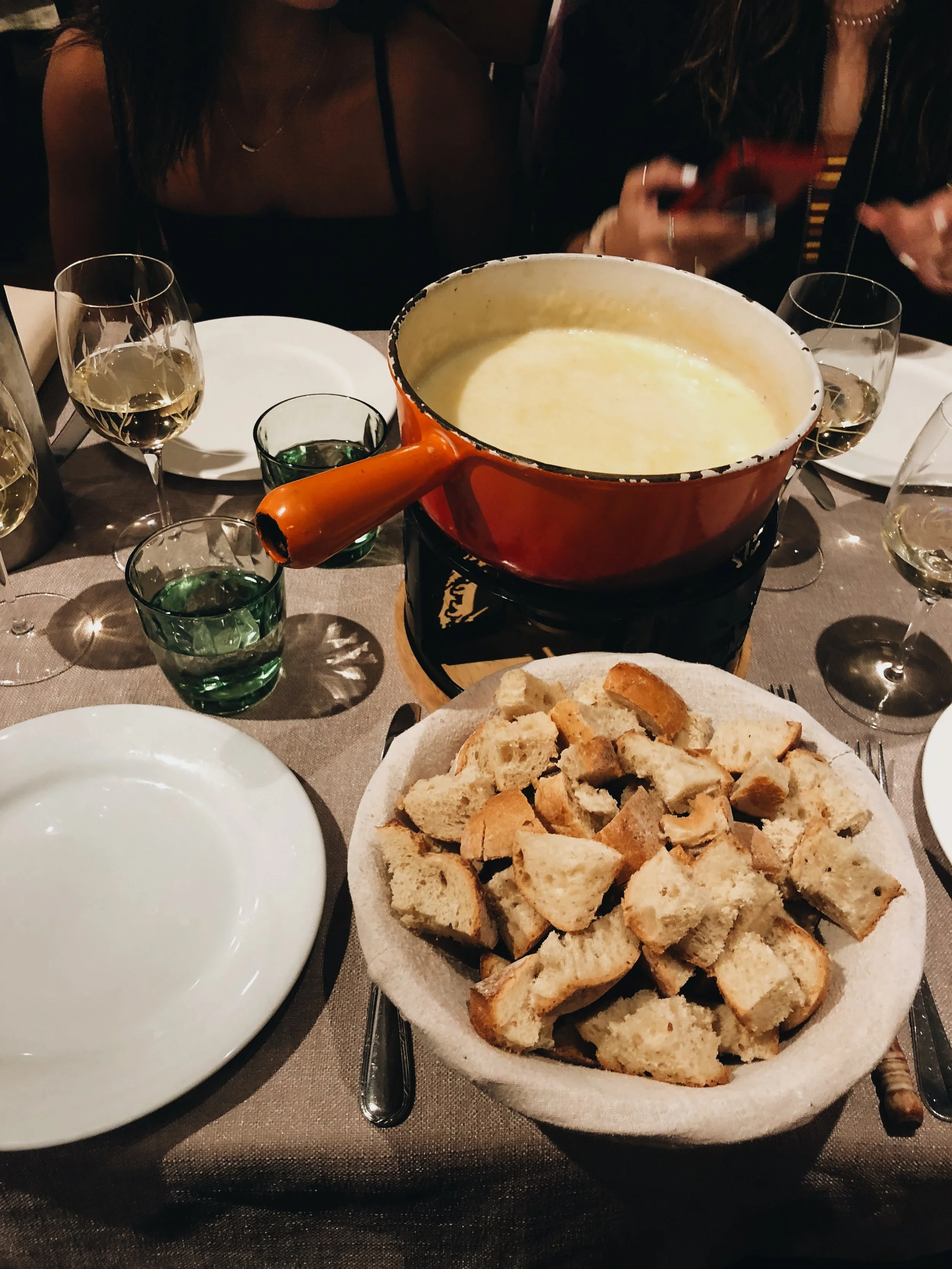 Fondue with bread, paired with white wine