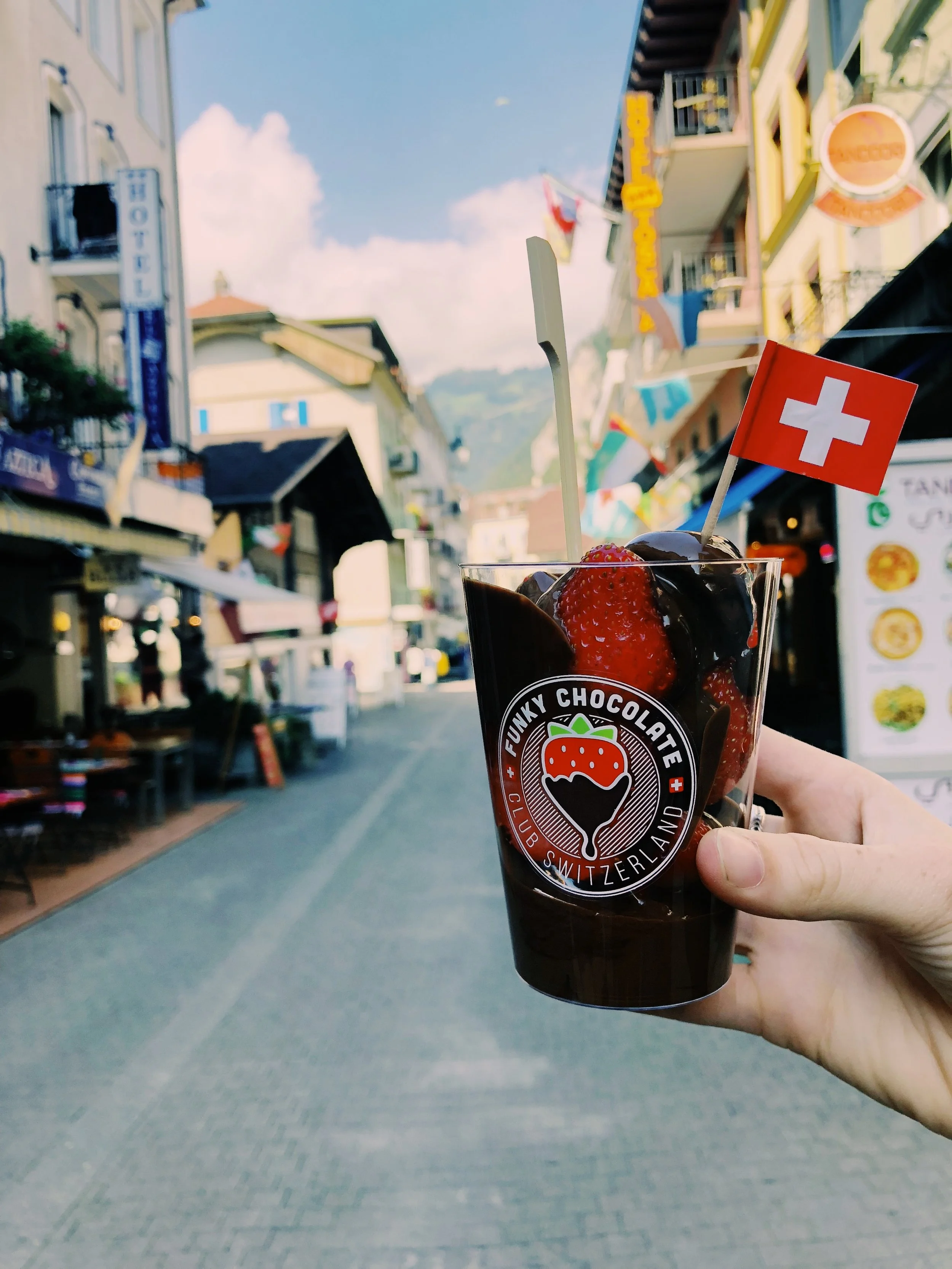 Strawberries drizzled with milk chocolate fondue at Funky Chocolate